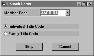 Select the member you would like to write a letter to and then select whether to use the Individual or Family Title Code on the letter. Click <Okay> to see the following screen: