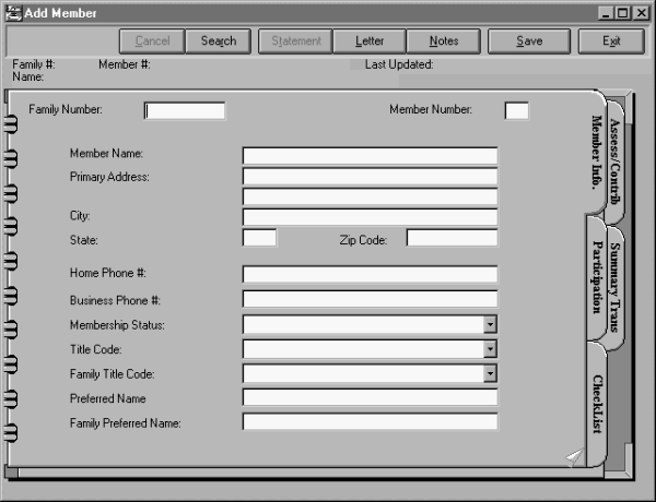 To add a new member select the "Add Member" option from the "Member" sub-menu. The following screen will appear: